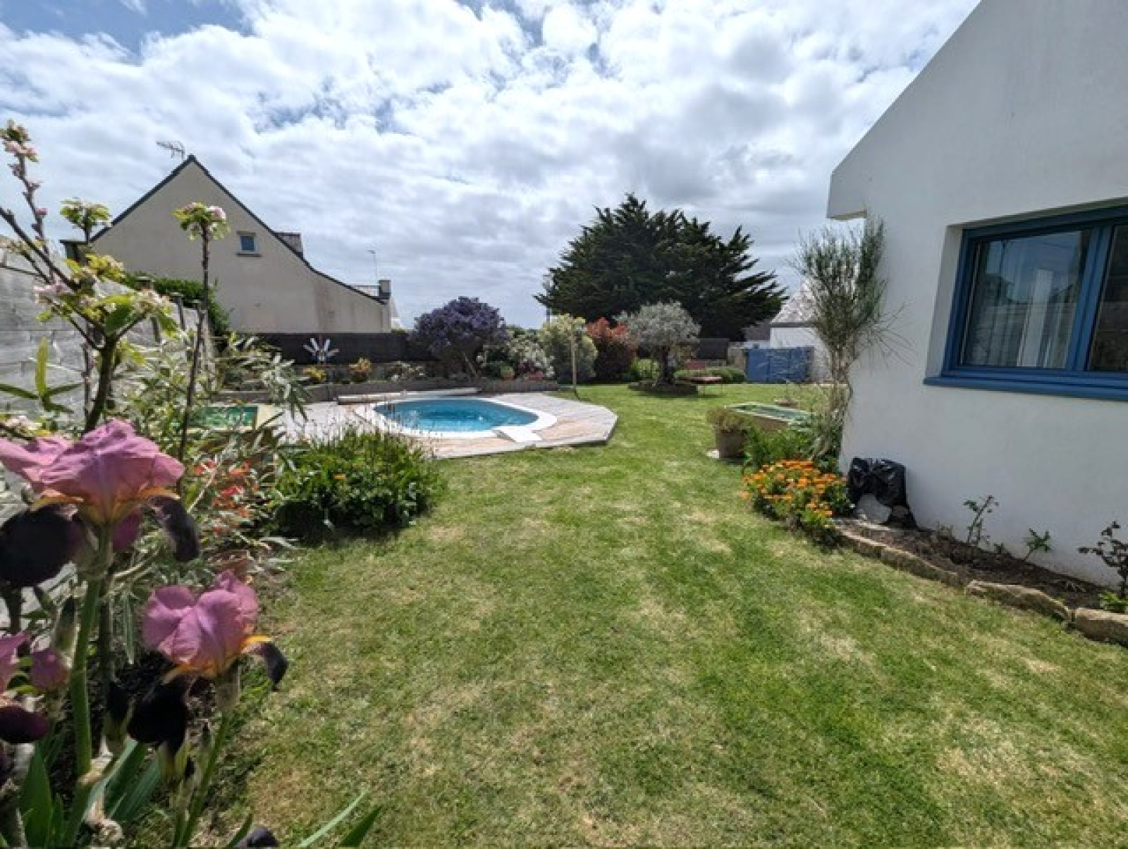 Caractéristiques : 1 entrée, 1 cuisine équipée, 1 séjour/salon, 1 terrasse, 1 suite parentale (salle d'eau et wc), 2 chambres, 1 salle d'eau, 1 wc indépendant, une buanderie, 1 garage, 1 piscine, terrain 538 m².