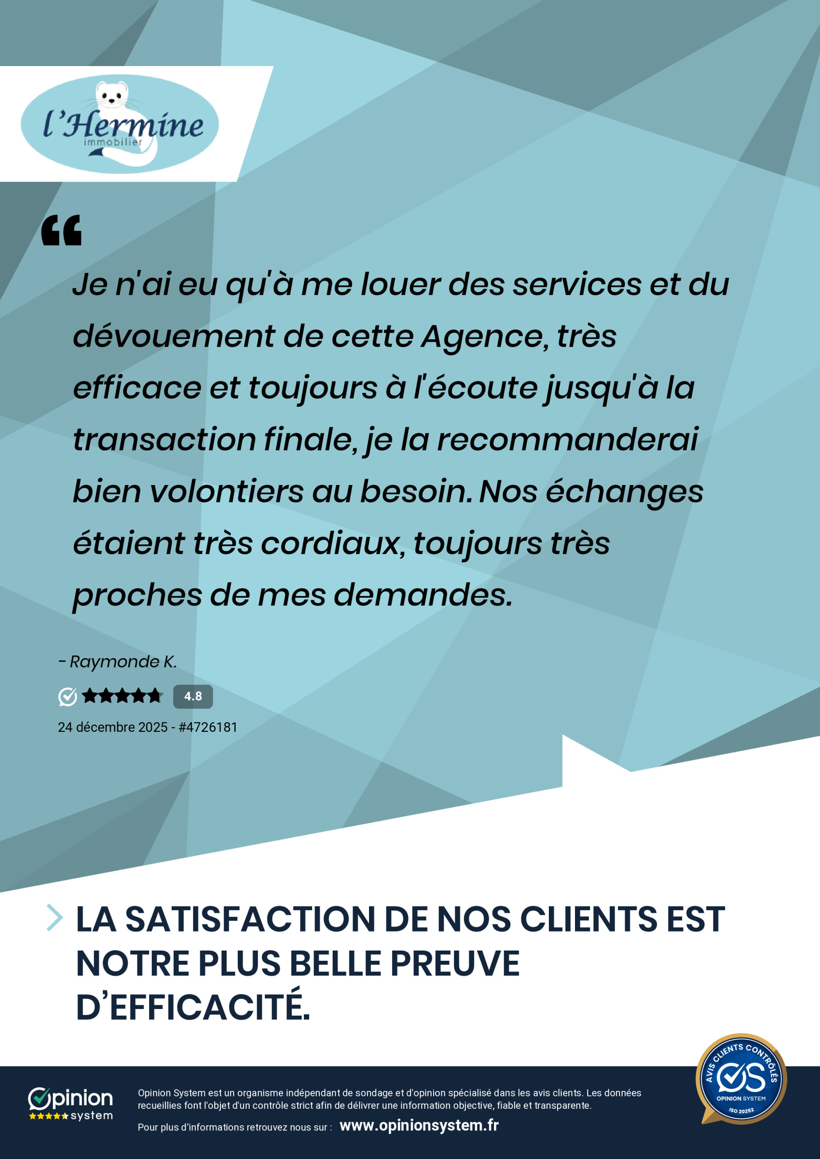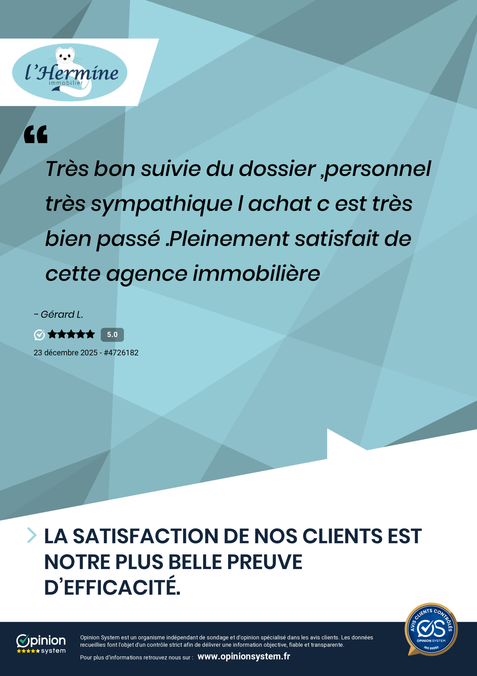 Pleinement satisfait de cette agence immobilière.