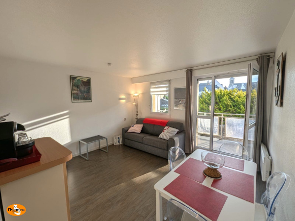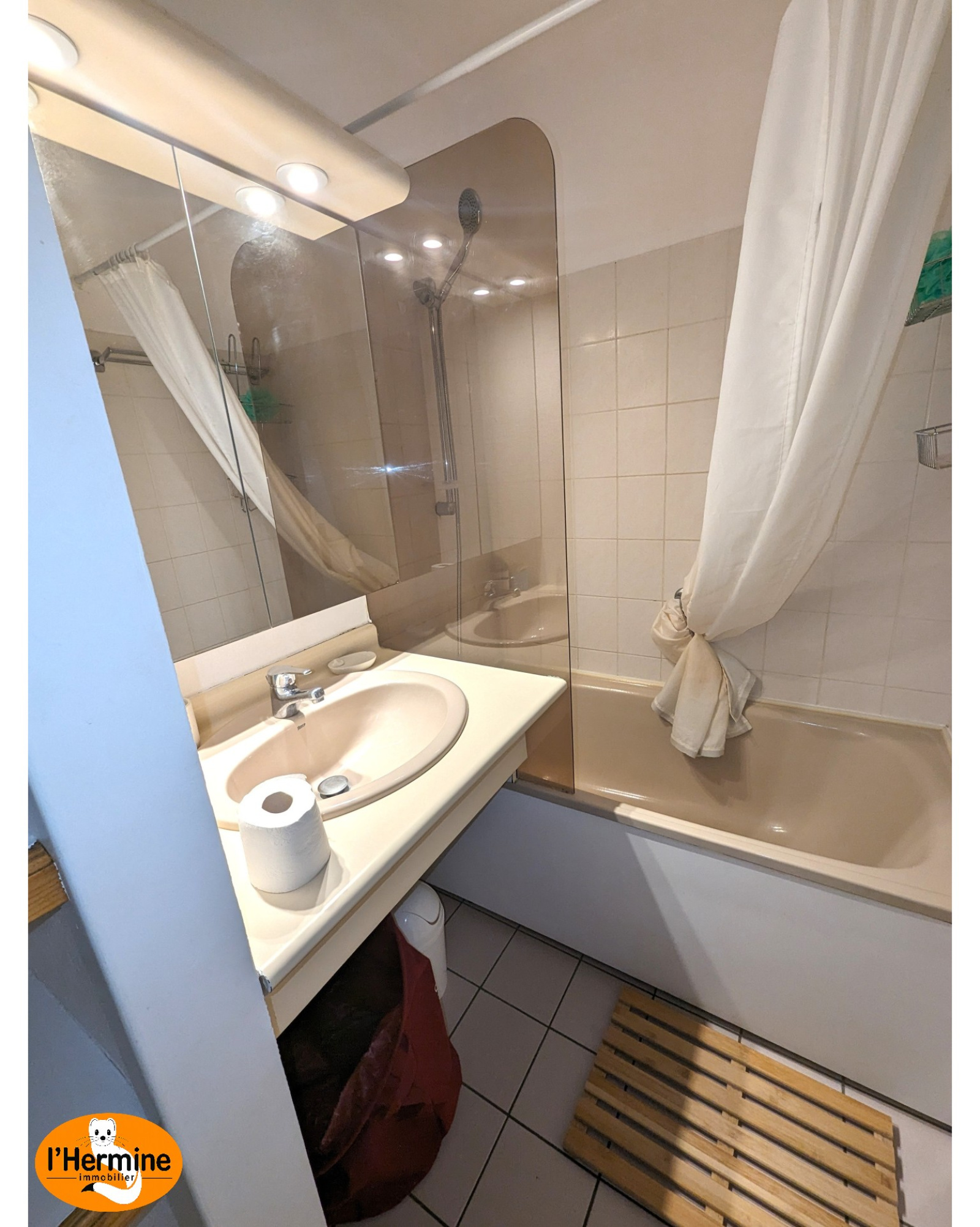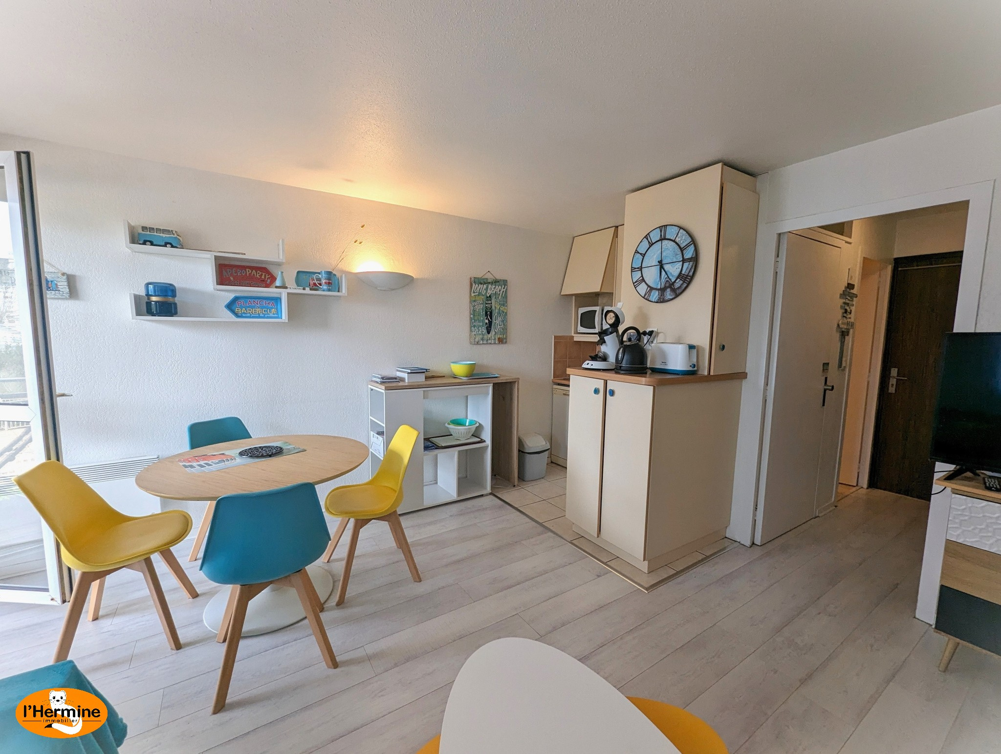 Atouts du bien : Au 1er étage avec ascenseur, cet agréable appartement composé d'une entrée, une salle de bain, wc, une cuisine équipée ouverte sur la pièce de vie donnant sur un balcon.