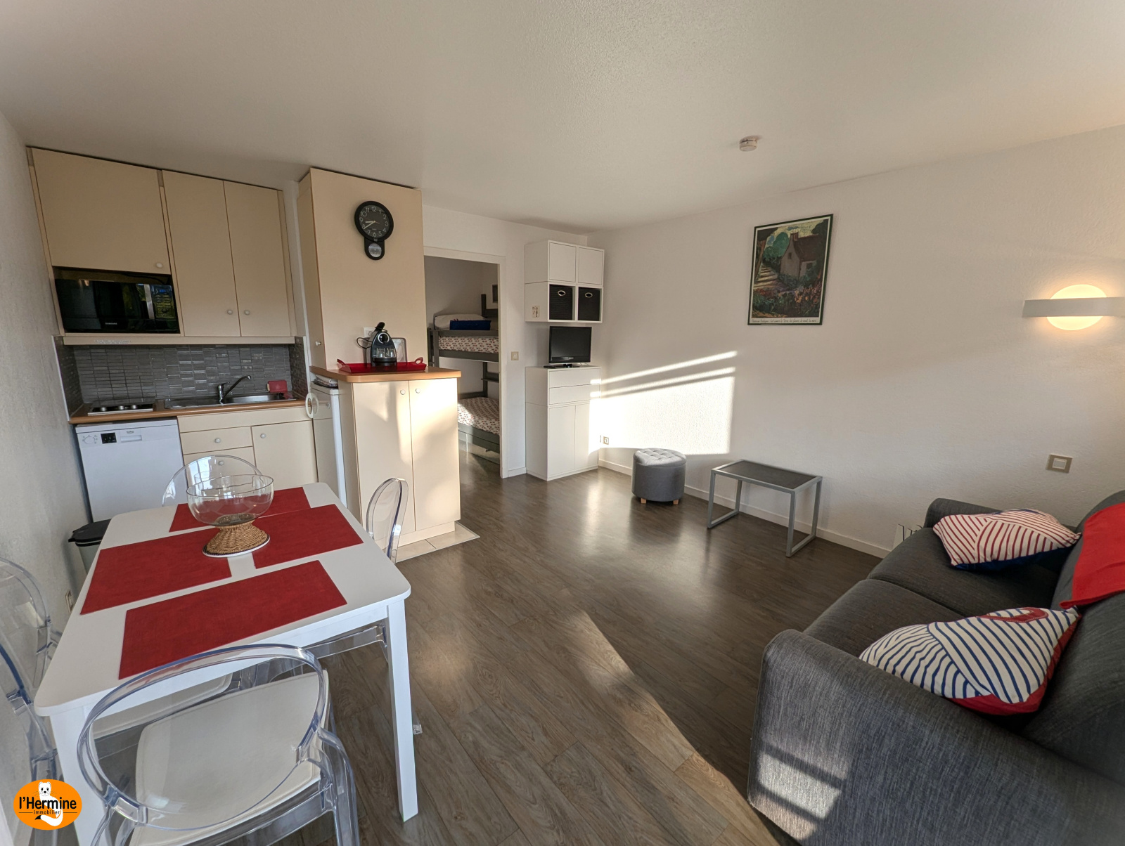 Atouts du bien : Situé au 2ème étage avec ascenseur, ce très bel appartement composé d'une entrée (lits superposés), une salle d'eau avec wc, une cuisine équipée ouverte sur la pièce de vie donnant sur une terrasse avec la vue dégagée. Vendu meublé