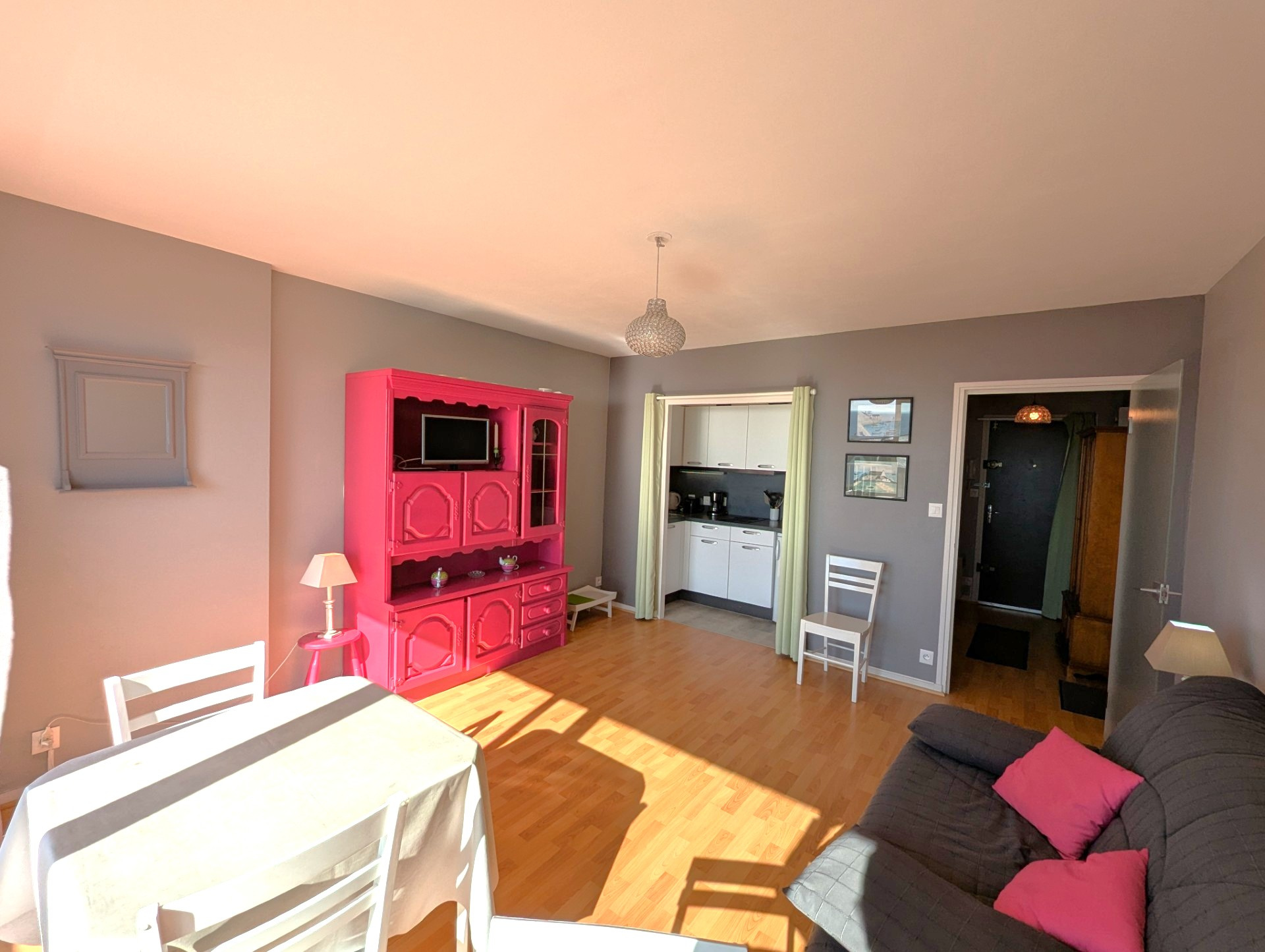 Atouts du bien : Au 2ème et dernier étage cet agréable appartement composé d'une entrée, une salle d'eau avec wc, une cuisine équipée ouverte sur la pièce de vie donnant sur une belle terrasse pleine Vue Mer. Vendu meublé