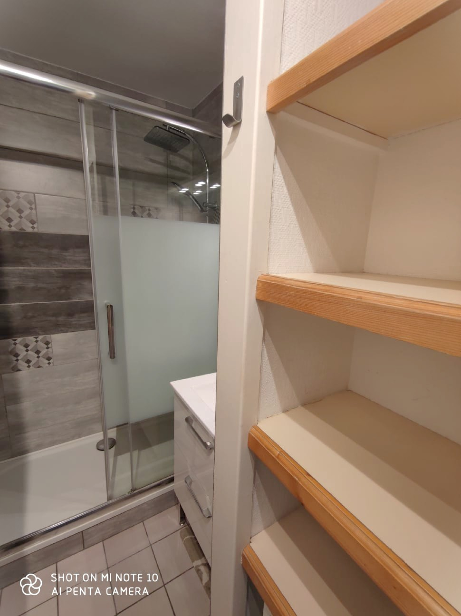 Caractéristiques : 1 entrée (couchage), 1 salle d'eau, 1 wc, 1 placard, 1 cuisine équipée, 1 pièce de vie, 1 terrasse, 1 parking