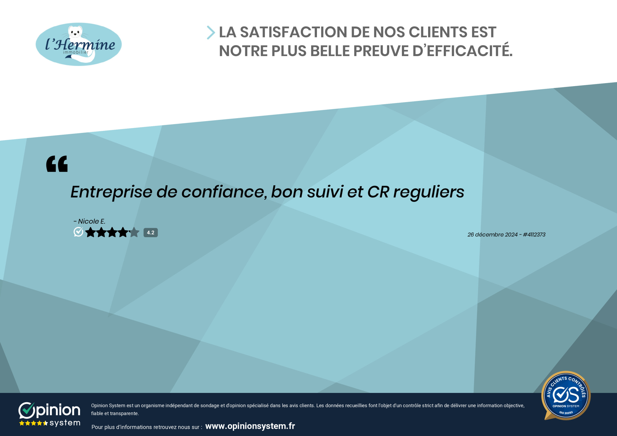 Entreprise de confiance, bon suivi et CR reguliers