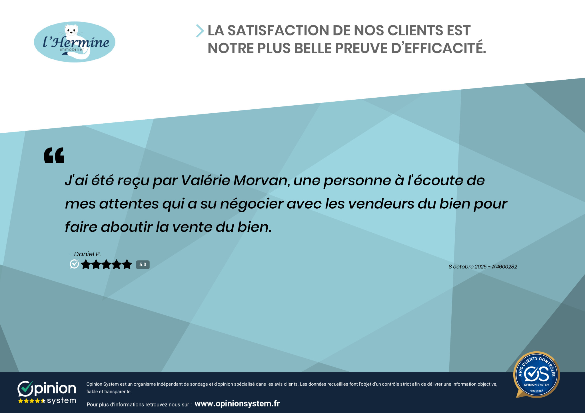 J'ai été reçu par Valérie Morvan, une personne à l'écoute de mes attentes qui a su négocier avec les vendeurs du bien pour faire aboutir la vente du bien.