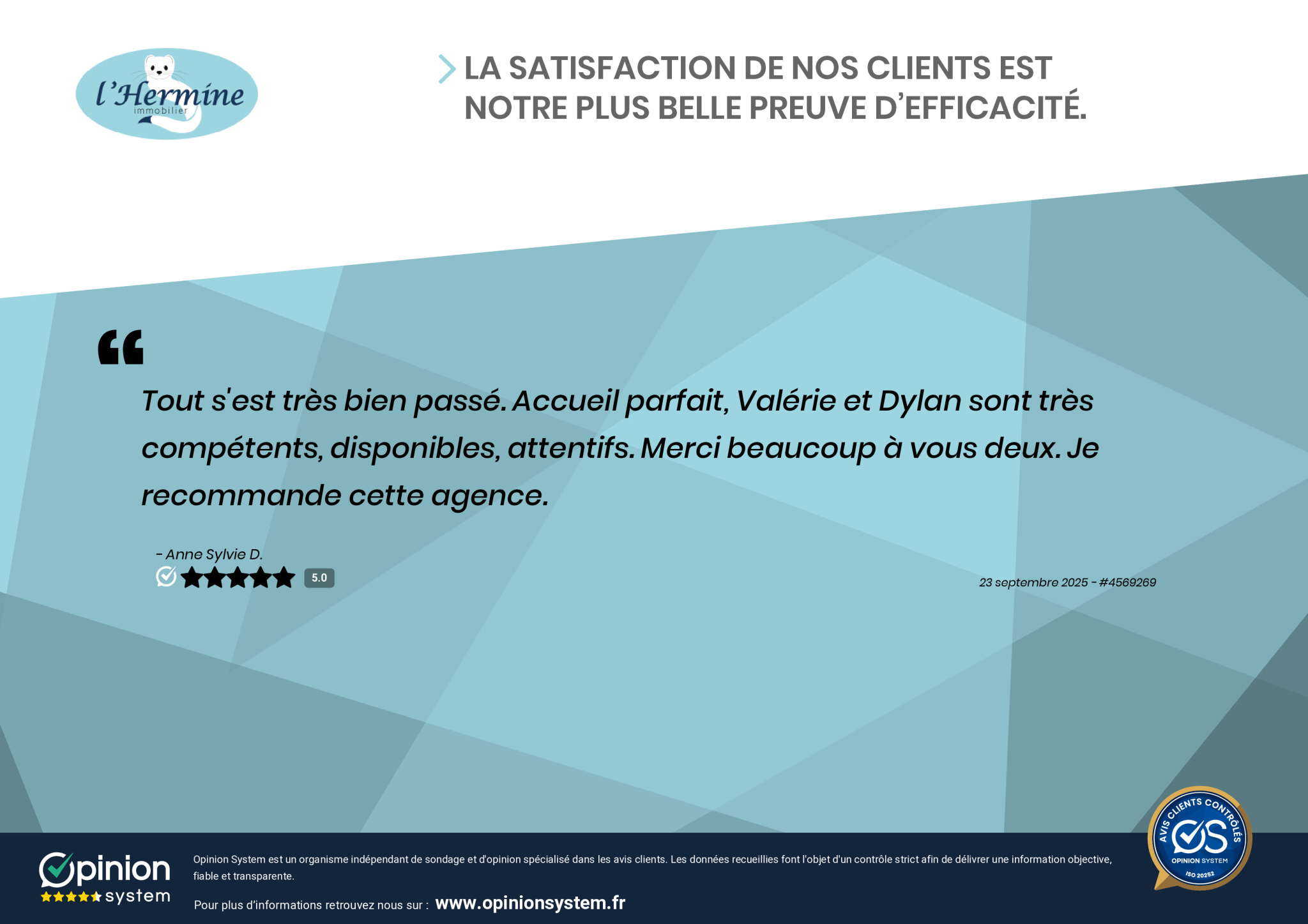 Tout s'est très bien passé. Accueil parfait, Valérie et Dylan sont très compétents, disponibles, attentifs. Merci beaucoup à vous deux. Je recommande cette agence.