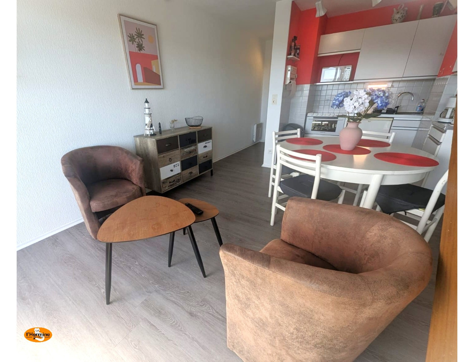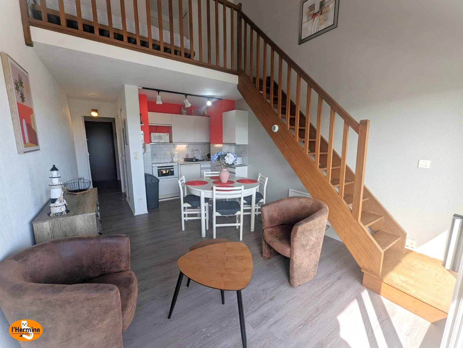 Atouts du bien : Situé au 3ème et dernier étage, cet agréable Duplex composé d'une entrée (possibilité d'aménager en chambre cabine), 1 wc, 1 cuisine équipée ouverte sur le séjour/salon donnant sur un balcon offrant une vue mer. A l'étage une mezzanine, 1 chambre cabine, 1 salle d'eau avec wc. Vendu meublé.
