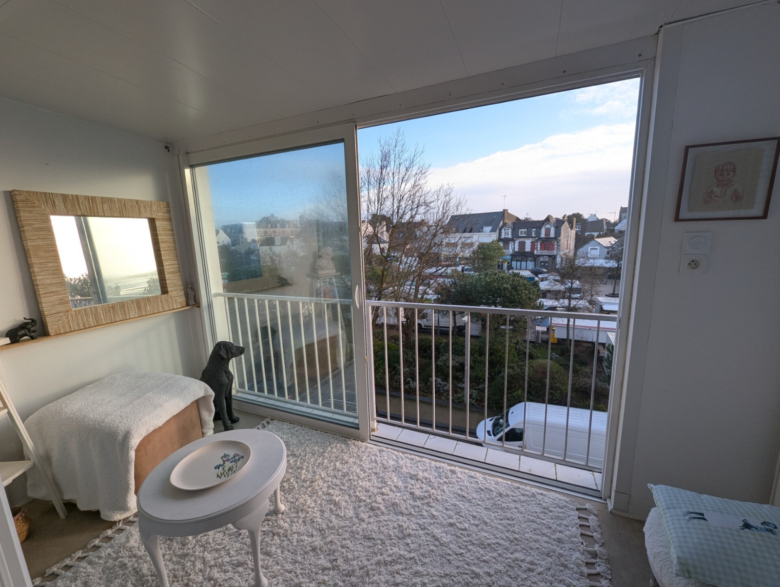 Atouts du bien : Au 3ème étage avec ascenseur, il comprend une entrée, deux chambres dont une avec un balcon, une salle d'eau, wc, un dressing, une cuisine équipée ouverte sur le séjour/salon lumineux donnant sur une loggia offrant une vue mer.