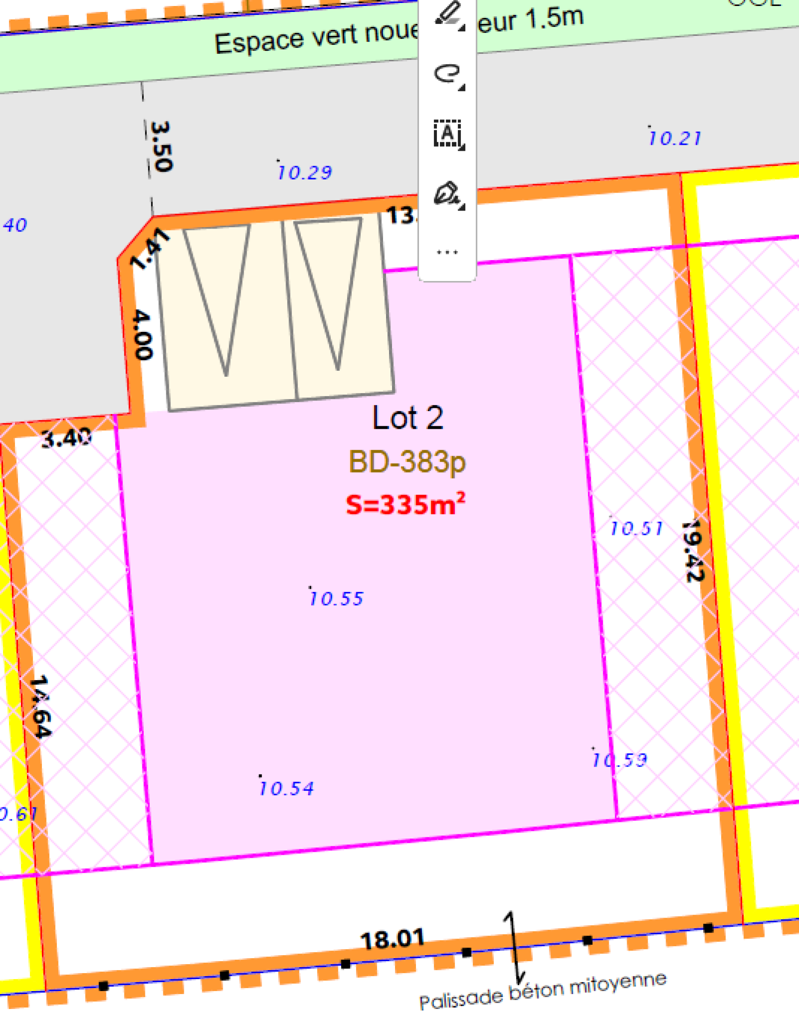 surface terrain 335 m²